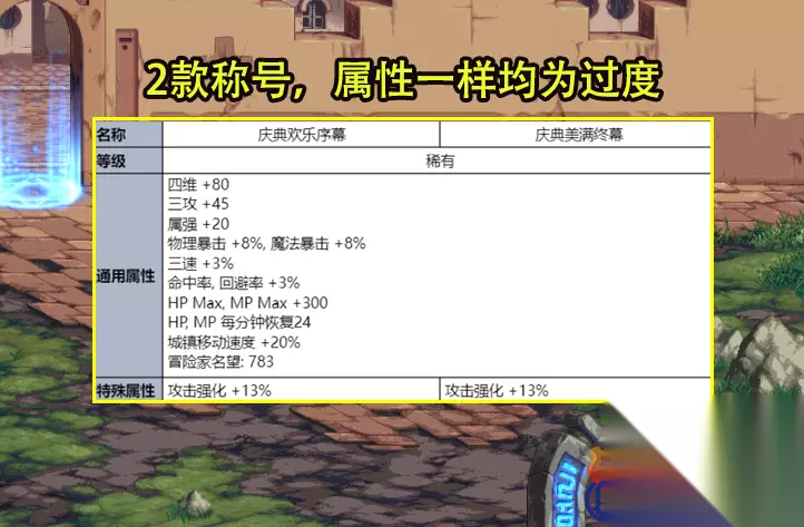 2、夏梦水上乐园称号自选礼盒 欢乐序幕和美满终章两个称号,两个称号属性一样就是外观不同。