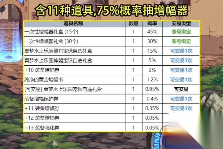 6、夏梦水上乐园纹章自选礼盒 这次的纹章属性相比于之前得到了提升。