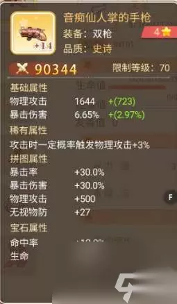 拼图选择 优先级根据顺序排列 火枪手:物攻,暴击,暴伤,无视物防