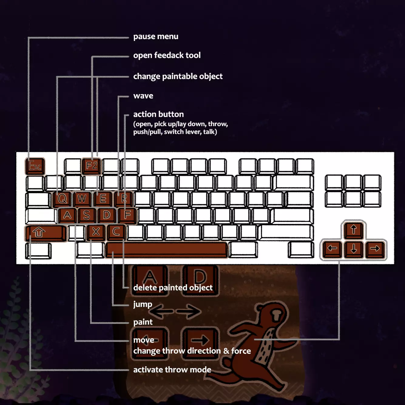 按下ESC键后,你可以在暂停菜单中查看键盘或手柄的控制方式。根据你游玩演示版时所使用的设备,显示的控制图示将会有所不同。