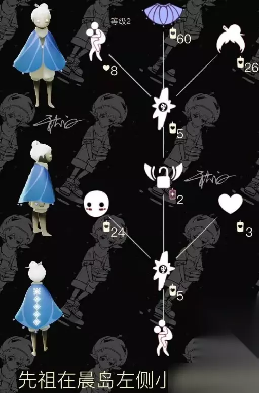 光遇背背先祖兑换表 兑换攻略: 一共需要123根白蜡烛、8颗爱心以及2根红蜡烛。