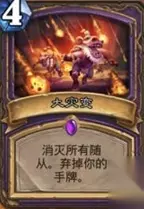 在原来的这套弃牌术的卡组中都是低费的卡牌,在天梯面对各种各样的卡组就显得比较的被动,但是只要节奏非常的顺利,那么这局对战就基本可以是稳赢,但是如果是比较克制弃牌术的卡牌效果就玩起来很难。因此在现在的版本就是将弃牌术卡组进行相应的改动,在卡组中部分卡牌进行替换从而增强在后期也有发挥的空间。 现在版本弃牌术增强方面就是加入新的卡牌大灾变,有很强的清场效果,可以消灭所有的随从,但是负面的效果就是需要弃掉玩家所有的手牌,只有4费就算是在前期遭遇劣势的情况,都能使用这张卡牌扭转局势;卑鄙的恐惧魔王能在玩家回合结束时对全部敌方随从造成1点的伤害,效果就是简单暴力,对于弃牌术卡组现在还是很有必要,而且到后期的时候还能补上伤害。