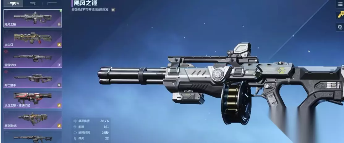 3、飓风之锤 飓风之锤的攻击力是谁用谁知道,霰弹枪类型的武器却有着225点的攻击力,就连武器的威力都达到了83点,武器自身的射程和续航能力也是没得说,超高的攻击力让他成为了打副本比较枪手的武器,若是和超级复合弓的技能搭配着使用,可以让武器在短时间内就打出成吨的伤害,简直就是平民玩家必备的一把神器。