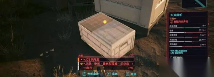 这里也可以放弃任务直接开枪,触发战斗后拾取。 四、D5响尾蛇 传说(智能突击步枪)