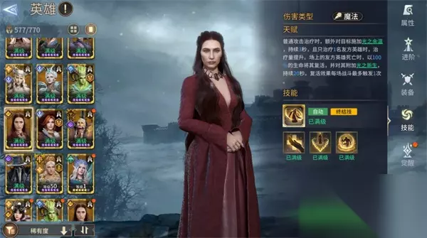 减伤:终结技开启后提升50%治疗量,并且可降低15%所有伤害,第二次释放时持续时间永久。所有伤害降低效果可与范围减伤、物理/魔法伤害降低等效果叠加生效 护盾:友方受到单次最大生命值30%以上的伤害,可提供其25%最大生命值护盾,能提高生存。终结技持续时间可获得50%生命值护盾。北境阵营中的雪诺、瓦尔基拉、厄铎安等英雄,输出与护盾量挂钩,与梅丽珊卓有额外联动。 复活:全场战斗可无视距离复活1次友方,能提高队伍容错。 回怒:1觉后每秒为攻击范围内的友方回复1.2%怒气,高于树奶的3秒回3%。 开启终结技时可降低所有伤害,拥有出色的队友保护能力。这名英雄可作为装备2特化,也适用于宝石本、深渊龙、主线等大多数奶妈需求场景。 英雄测评 1觉后可提供回怒,能提高友方英雄终结技释放频率。这名英雄机制较全面,是比较值得入手的顶尖奶妈。