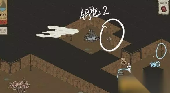 宝箱钥匙四: 在酿酒坊的后边,需要玩家先点击休憩桌进到回忆梦境当中,实际上跟现实宝箱位置一样。