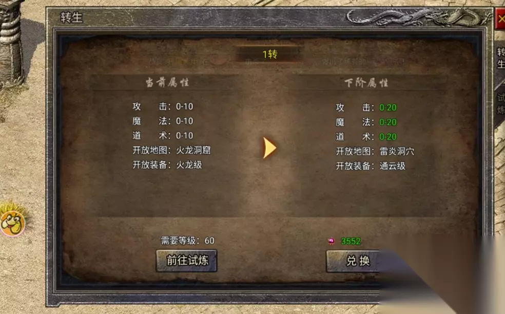 转生: 游戏内等级达到50级即可进行转生任务,完成转生任务即可提升转生等级。转生越高,能穿着的装备等级就越高,开放的地图也越多,属性也有大量加成。