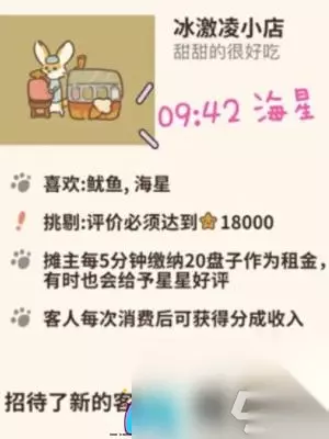 解锁要求:顾客评价18000星以上 店铺租金:每5分钟缴纳20盘子