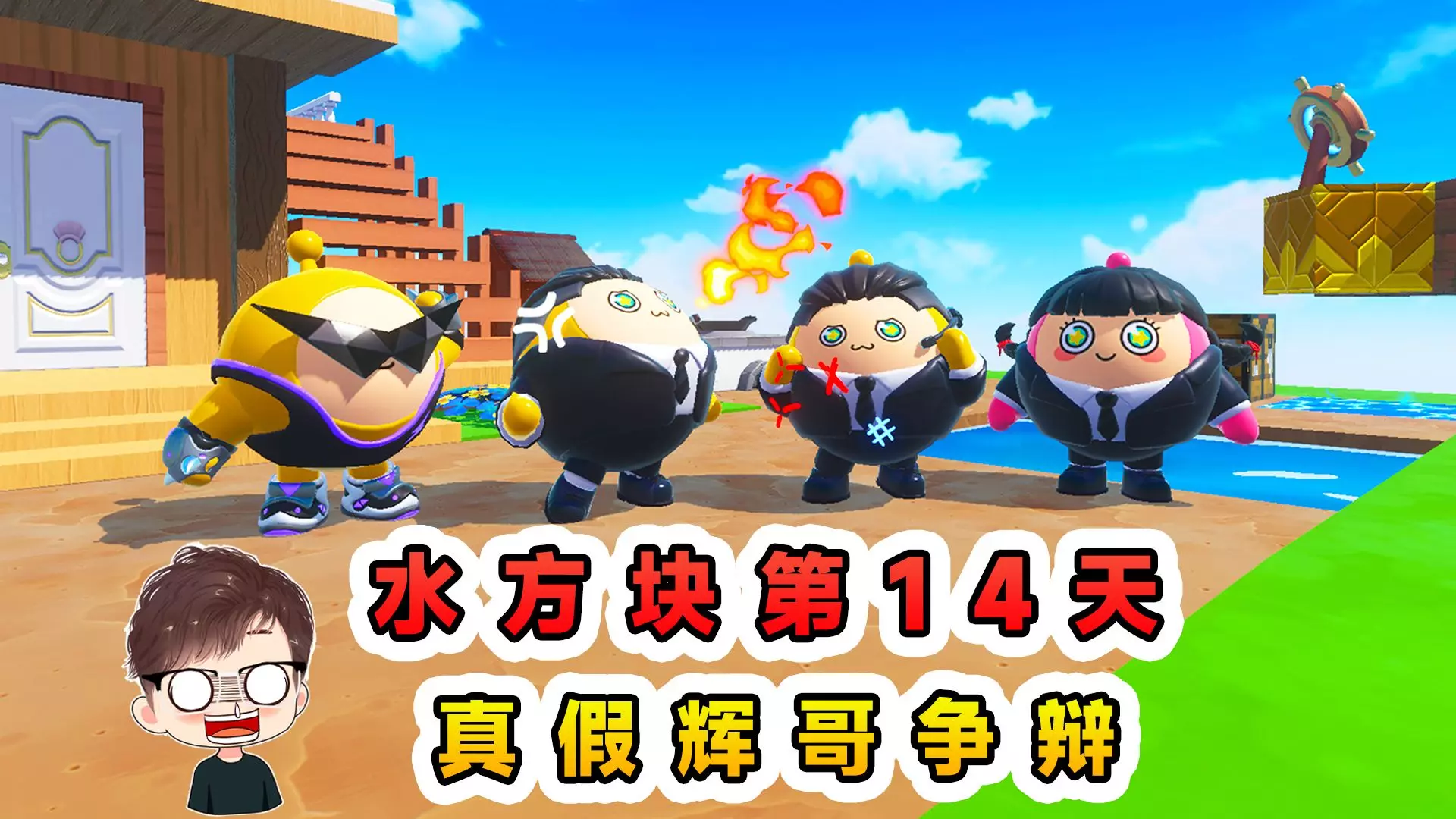 蛋仔派对:水方块生存第14天!真假辉哥争辩,最后完成基地交换