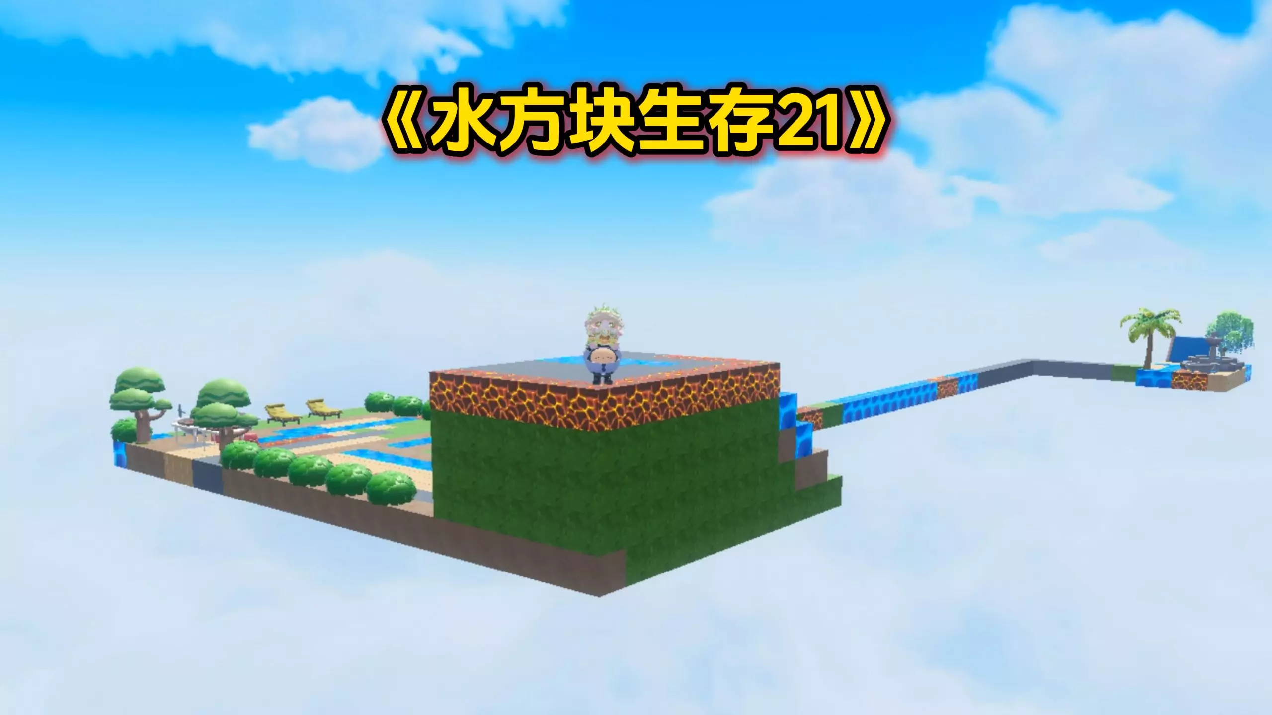 蛋仔派对:水方块生存第21天!浪哥被炸飞,空岛断裂一分为二!
