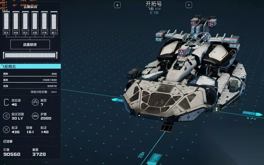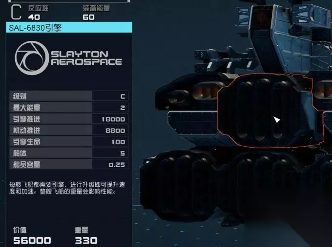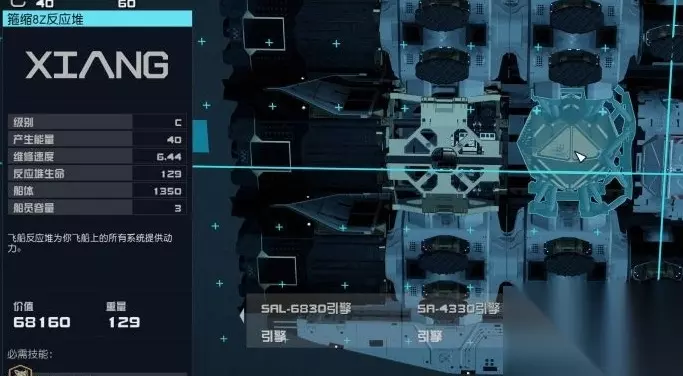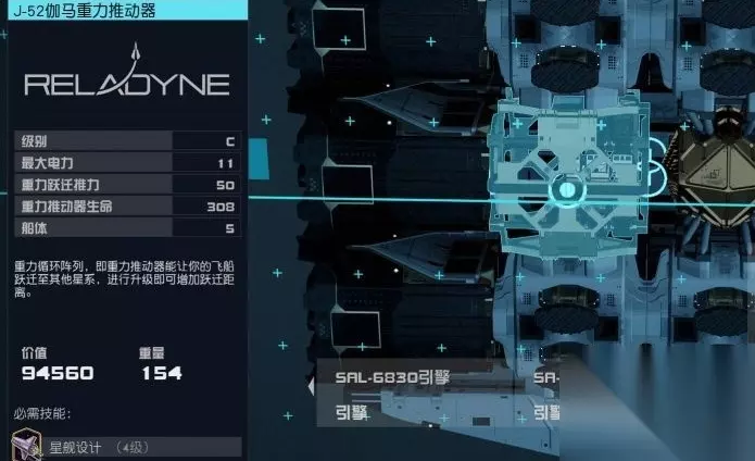 副引擎SAL-6830(A级),六台,总重4000左右的情况下保证拉满100机动。 反应堆和重力推动器(C级)