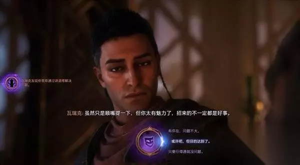 通过剧情对话,你将遇到瓦瑞克,选择剧情桥段,获得你想要的效果。 接下来跟随瓦瑞克前往地图的下一个目标。