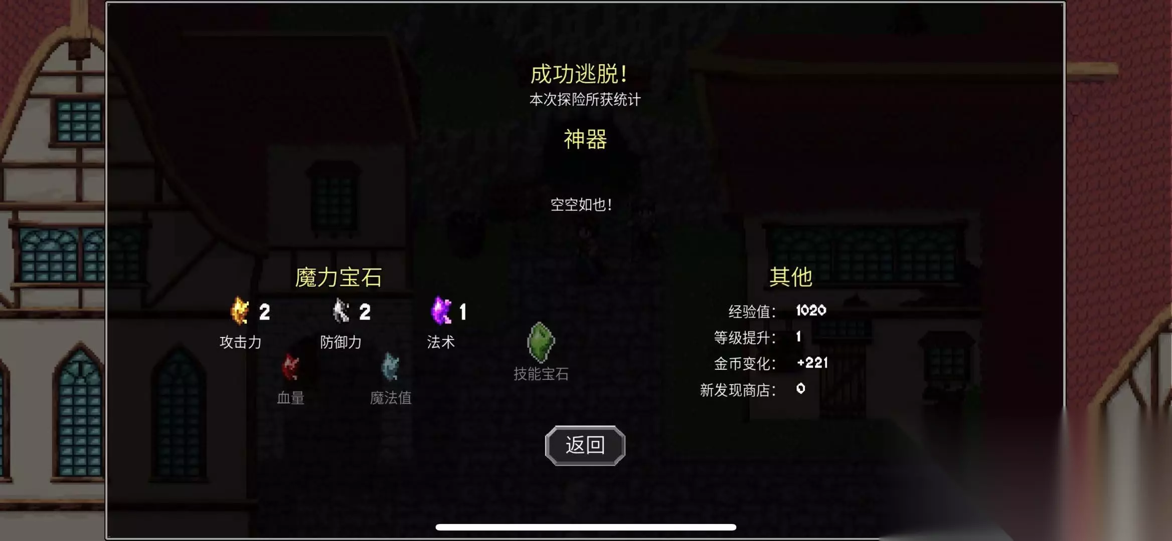 2、神器在关卡随机刷新,也就是不会在同一个关卡出现,而是随机性刷新,玩家获取之后使用逃离之翼就能安全离开洞穴,就能永久持有。 3、神器也有层次之分的,1层至10层属于一个层次关卡,也就是在1层至10层获取神器属性相差无几,11层至20层次的关卡获取的神器属性就会比10层以下的神器属性好。 4、玩家注意小技巧,玩家可以在1层至10,无限刷新神器,在打开金色箱子,是随机出现神器,虽然属性差不多,角色身上可以携带10件神器,所以前期积累神器一定是有的。 5、在一层至十层刷新一套神器套装,在去11层至20层在刷新一套,以此类推每10个关卡这样无脑刷关卡是最稳定的通过方式。 以上就是小编给玩家介绍的魔法洞穴2最强装备推荐以及神器全面介绍分析。