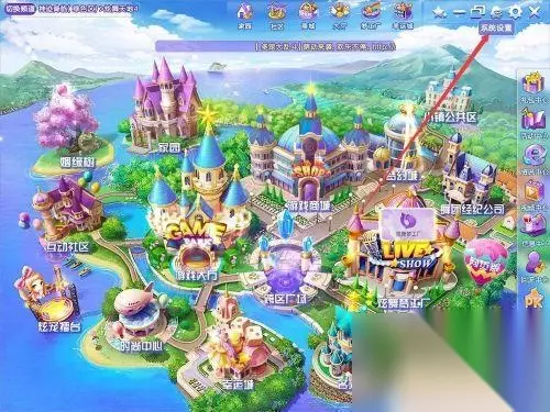 5.点击右上角的返回按钮返回到QQ炫舞主界面,然后点击右上角的齿轮(系统设置),