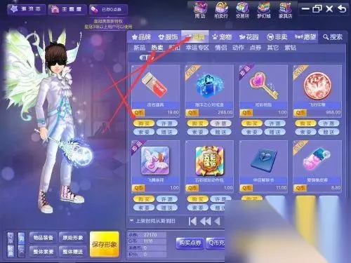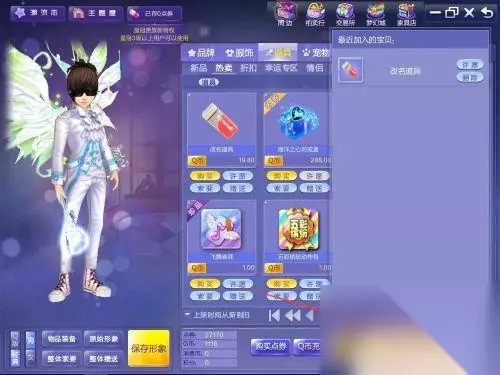 2.点击“道具”选项卡,然后点击“热卖”,之后再点击”改名道具“的购买。
