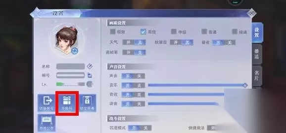 2、我们就进入到了设置页面,在此页面就可以看见【兑换码】的功能选项,点击进入。