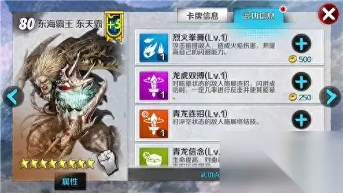 【队友搭配】:青龙堂的拳师不多,但是个个都是十分优秀的拳师。以东天霸为核心的阵容搭配思路可以非常清晰: 1号位:东天霸,2号位:金燕(道天风) 3号位:洪玄公 4、5号位:青龙堂发动机+奶妈 洪玄公:洪玄公同样可以提供同排队友闪避10秒内增加最高420点的BUFF,东天霸+洪玄公轮流释放主动技能可以让这个BUFF的真空期变短。8星洪玄公的终极技能更是可以直接提供可怕的1323点闪避值加成。 金燕:金燕师姐作为一位具有伤害反弹、换位能力的拳师,可以在跟上东天霸眩晕连击强化输出的同时保证全队生存能力:必要时,金燕可以替换主T为东天霸承担伤害。当然,如果大家想进一步强化输出,这里也可以使用道天风来衔接青龙堂终结技。 青龙堂发动机:这里推荐使用陈苏儿,枪手的技能补充了拳师无法攻击后排的短板,8星后的陈苏儿的终极技能更是可以削减敌方的内力。 奶妈:这里推荐天照,后期副本中,很多时候都需要天照来祛除异常状态,8星天照的终极技能也可以为队友回复内力。 当然,以上只是小编自己的思路,东天霸特殊的技能能力可以让他和其他阵营的卡牌都能有一个很好的搭配。