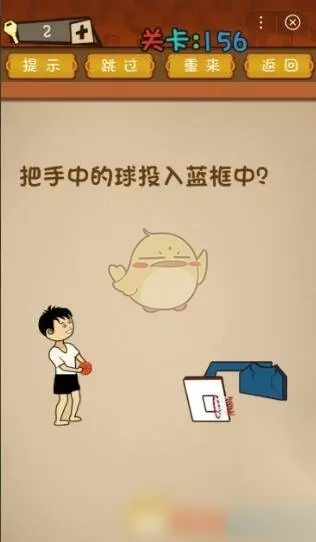 《最强的大脑》第156-160关通关攻略 第156关 先点击篮球架底座几下,篮球架断了后,点击拿着篮球的人就过关了。