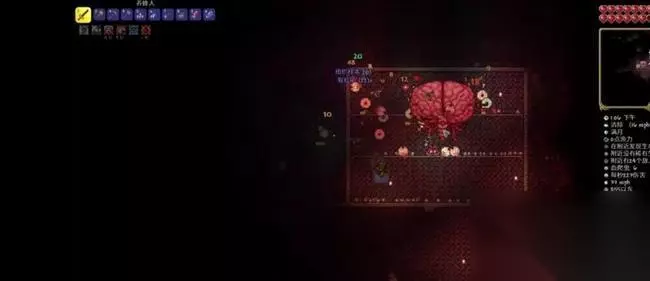 2、然后召唤克鲁斯之脑,克鲁斯之脑第一阶段是无敌的,会传送到玩家附近。与此同时一起出来的飞眼怪仆会攻击玩家