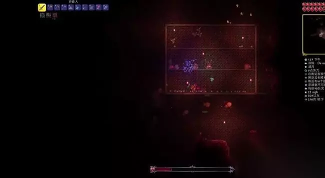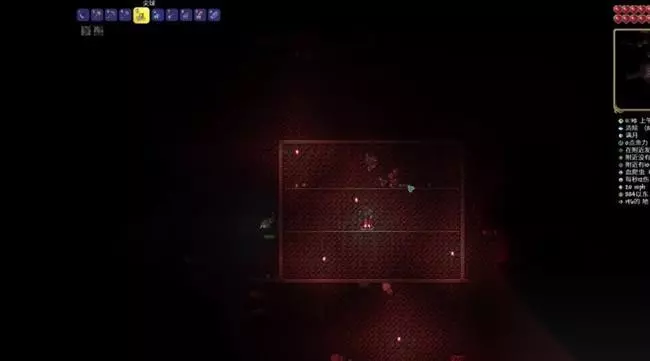 1、首先来猩红之地,先建好两层或者三层平台然后再上面铺上尖刺