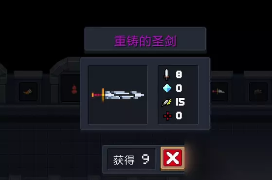 破碎的剑刃是合成圣剑的另一组成部分,需要4个铁矿石在锻造台的投掷武器类中制造。与破碎的剑柄不同,剑刃属于白色品质的投掷武器。制造完成后,玩家需要同时携带破碎的剑柄和破碎的剑刃进入关卡。游戏机制允许玩家携带三把武器,这为后续的合成步骤提供了便利条件。将破碎的剑刃通过武器箱更换到地上,靠近掉落的剑刃会出现合成按钮。点击右侧的合成键即可完成圣剑的合成。这一步骤需要精确操作,确保两件武器都处于可合成状态。合成后的圣剑为紫色品质近战武器,攻击力达到8点,具有范围攻击效果和概率眩晕敌人的特性。