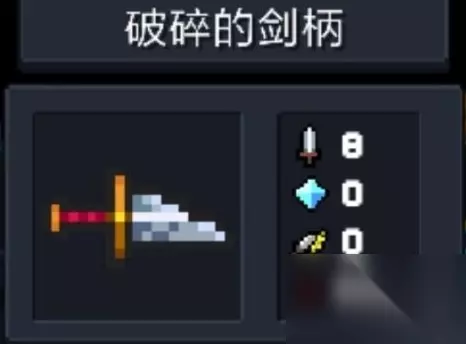 破碎的剑柄是合成重铸圣剑的关键材料之一。要合成破碎的剑柄,玩家需要收集3个铁矿石和1个木材。这些材料可以通过通关地牢获得,属于游戏中较为常见的资源。收集齐材料后,前往地图右侧的锻造台,选择近战武器类,找到破碎的剑炳选项并开始制造。破碎的剑柄本身作为近战武器性能较差,攻击速度和范围都不理想,主要价值在于作为合成材料使用。