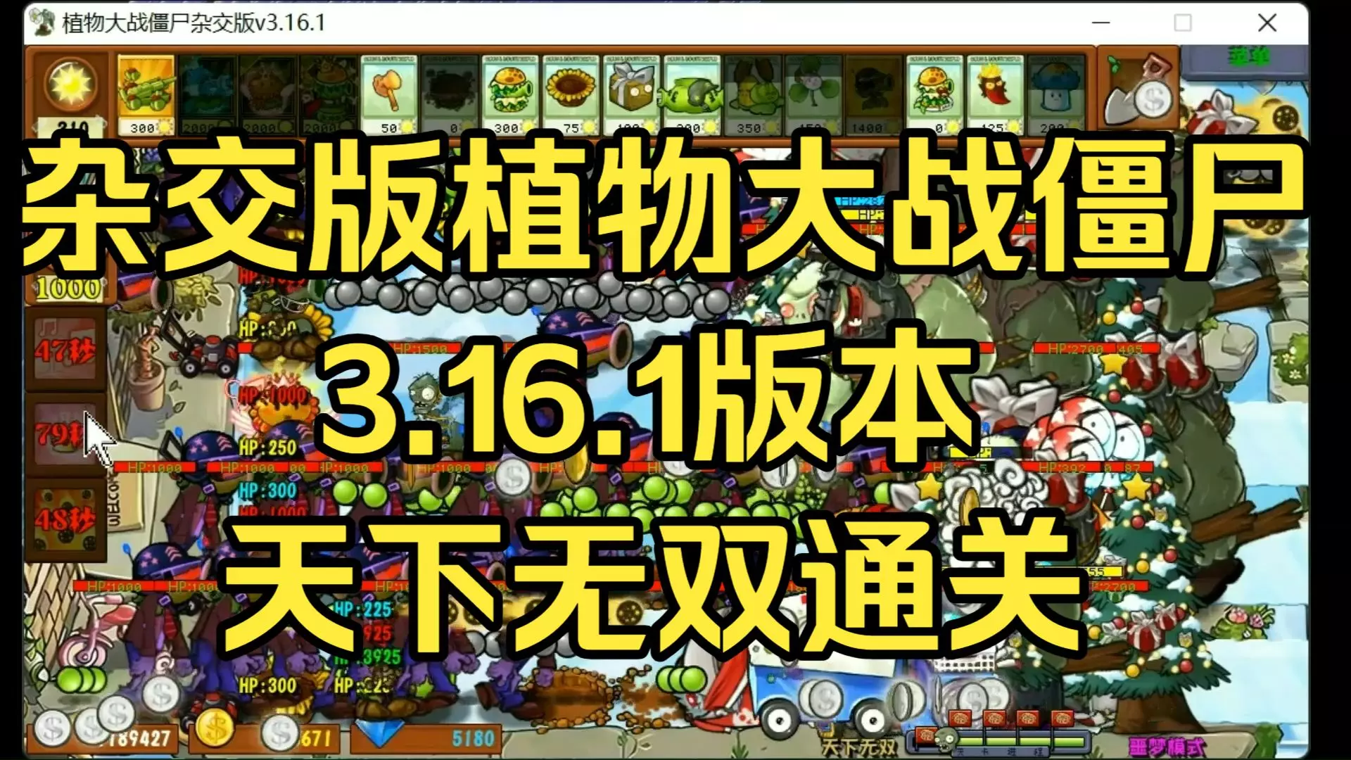杂交经典版 天下无双 噩梦 出了大哥系列以后,关卡索然无味了。 这关造出僵尸大哥+僵尸豆+ 叠满的火炬树桩=游戏结束。 唯一担心的是,僵尸大哥 数量多了 太容易闪退了