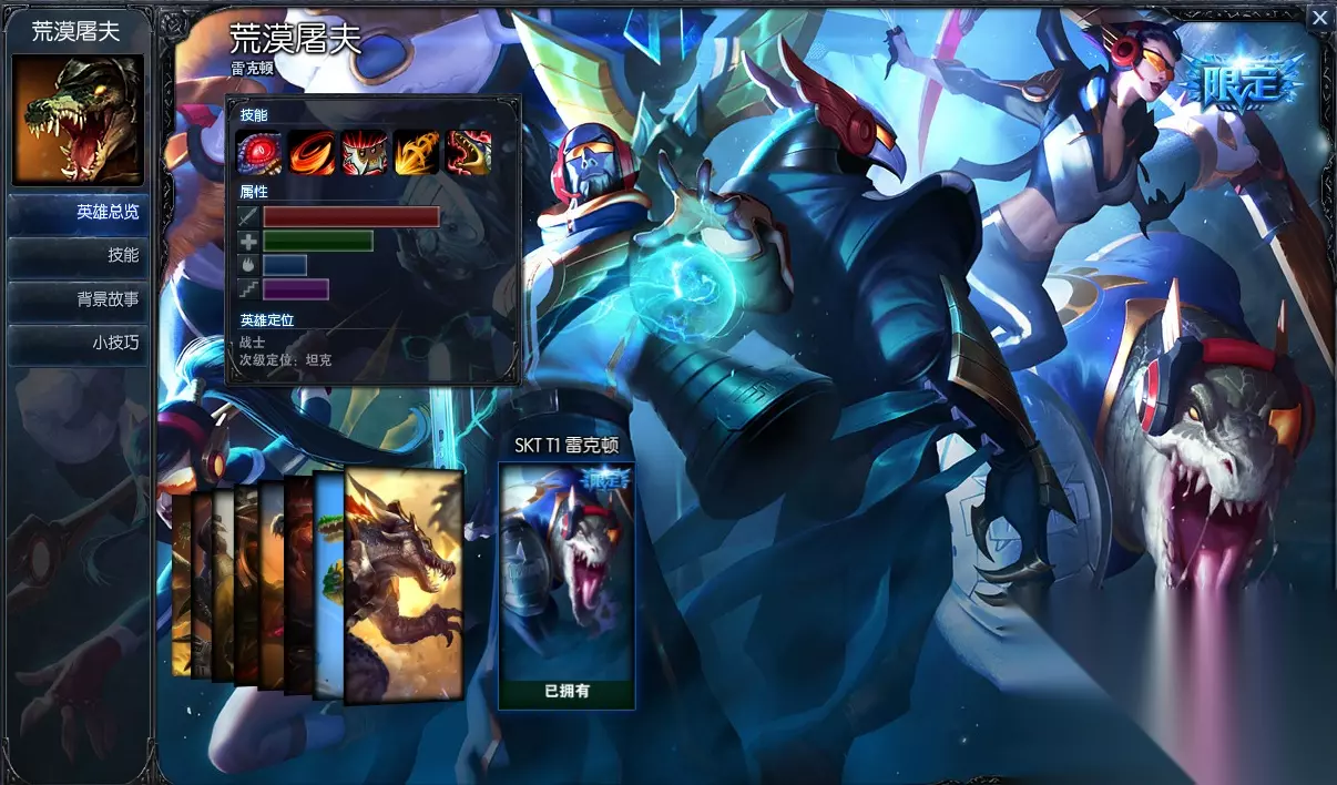 今天,我们来介绍一下荒漠屠夫 雷克顿 英雄联盟霸主鳄鱼曾经支配着所以上单的恐惧,还记得S5世界总决赛marin在SKT战队一举夺冠并豪取MVP的时候用的那一手鳄鱼吗?而一转眼,已经过去了一年,这不禁让我们又想起了Marin在总决赛的雄风,想要玩好鳄鱼,控温与连招是必不可少的。 季前赛版本鳄鱼出装: