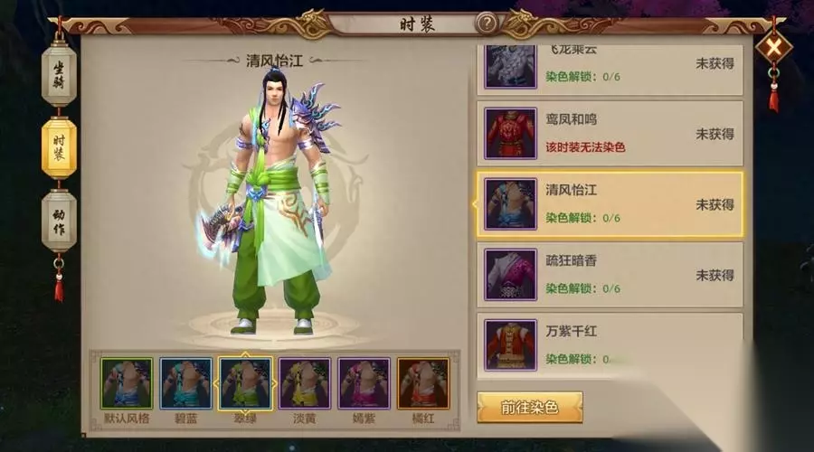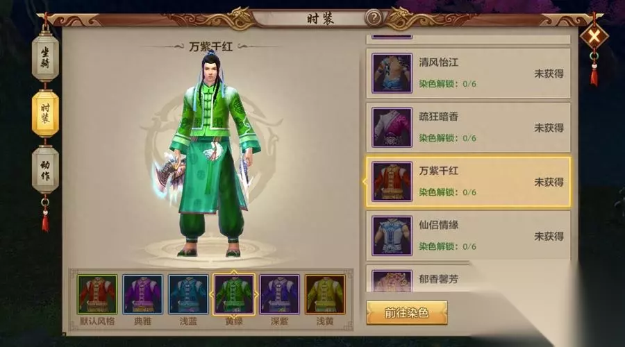 【染色介绍】 很多小伙伴可能会惊讶,时装里面没有绿色的,哪来的原谅绿?首先我们先来看一看染色系统。已获得的时装标注为可解锁染色时,便可以前往洛阳伊天彩处,使用虹曜石进行染色,最多可解锁五种染色风格。五种染色风格全部解锁后,可以免费获得橙色品质的染色风格。染色风格一旦解锁,均会永久保留。