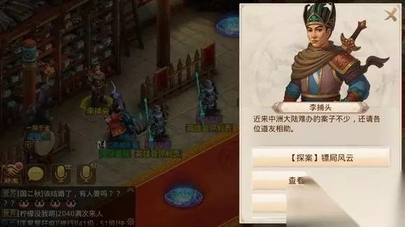 问道手游探案镖局风云攻略 1、官府李捕头 2、宋捕头 3、监狱许三 4、冯喜来 5、夜行人,继续点击夜行人答题 6、杨镖头 7、 百晓通边上陈镖头 8、官府宋捕头 9、大胡子-药店老板杂货店老板 10、桃柳林小娃娃 11、百晓通边 上陈镖头 12、官府宋捕头结案