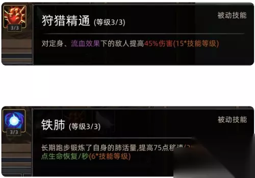 2.狩猎精通可以对定身和流血效果下的敌人提高45%伤害。搭配蛮子的技能锋刃,可以把蛮子的输出提高一大截。