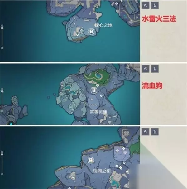 位于传送点正下方,将门前的两个火把点燃,即可进入 将道具分别摆在台子上,之后进入面前的旋涡中,它会带着你一路来到楼顶