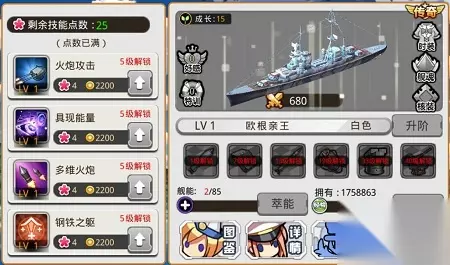 图4:欧根亲王号的专属技能完美再现了不沉之舰的威名 技能方面,欧根亲王号拥有四个技能:火炮攻击,具现能量,多维火炮与钢铁之躯。火炮攻击与多维火炮是作为普通输出手段,一个是对最近的敌人造成火炮伤害,一个是牺牲少量生命值对敌方四个目标造成伤害,并没有特别出彩的地方。而具现能量与钢铁之躯可以说是欧根亲王充当前排的神技。钢铁之躯作为被动技能能够提升自身生命上限,当技能达到满级可以提升欧根亲王23%的生命上限,配合上欧根本省的血量成长属性,可以说到后期是绝对的钢铁前排。同时发动怒气技能—具现能量,在对地方造成AOE伤害的同时,能对自身产生一个能量护盾,抵挡接下来的后续伤害。在拥有高血量高防御的同时,还拥有护盾技能,可以说,这两个技能成就了欧根亲王不沉之舰的威名。 在星阵方面,就要看提督大人的欧洲血统是否纯正了,拥有全部传奇神舰的欧洲提督们请移步。如果只拥有一艘欧根亲王这一艘前排战舰的话,选择双子星座或者狮子星座是最佳选择。将欧根亲王号放在整个队伍的最前排,在吸收伤害的同时,还能多次触发具现能量技能,用护盾吸收更多伤害,从而为后排的友舰创造输出安心的环境。