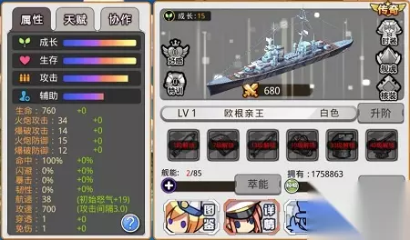 图3:欧根亲王的成长与生存属性极高,基本达到满格。 欧根亲王号的成长与生存都达到了满格,超强的防御与让人望而生畏的生命力是作为前排吸收火力的不二人选。在防御与生存方面达到顶级的同时,她的攻击力也不容小觑,达到了A+的水准,可以说是生存与攻击兼备的强大存在。而拥有如此逆天属性的背后,她的辅助能力就相形见绌了。仅仅达到B水准的辅助能力显然是她的短板所在,她对于整个队伍的实力提升或对于敌对方的限制相对而言就弱了许多。