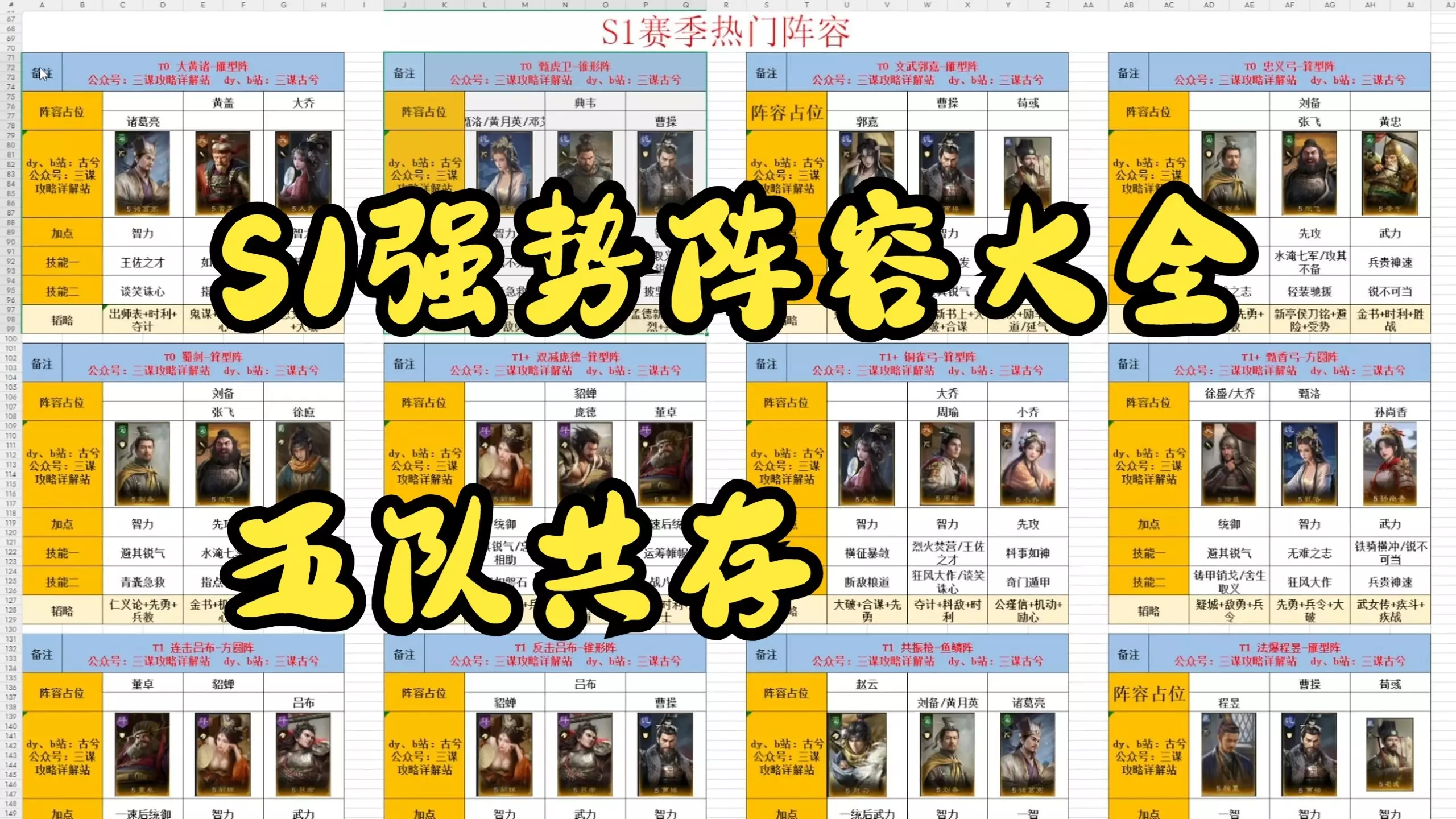 大黄诸,法爆郭嘉,胖胖貂,铜雀弓,忠义弓,蜀剑等强势阵容T0阵容和五队共存