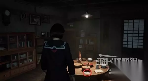 戎之丘-返回千鹤屋商店 进房子先搜刮一楼的抽屉,桌上有红色胶囊,大门暂时打不开。
