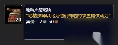 魔兽世界地精火箭燃油是我们在很多地精地盘打怪会掉落的道具,该道具其实主要就是用来制作道具的,可以做提纯器、炸弹、鞋子等各种东西,玩起来还是很有趣的。