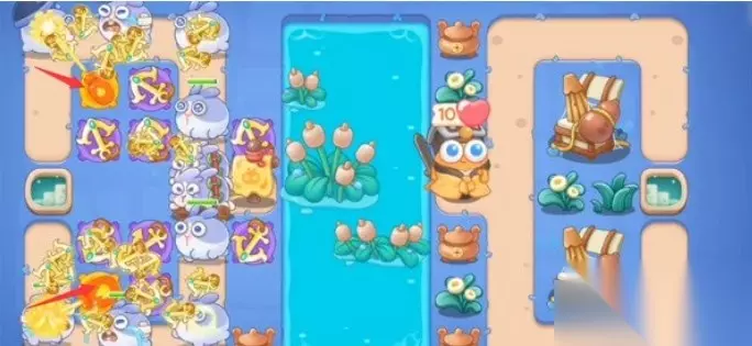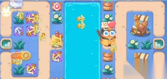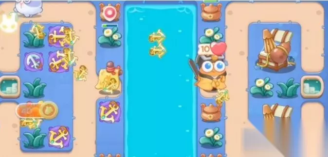4、如图所示补上船锚塔,这时我们左边的障碍基本清理干净了,我们需要注意的就是尽量将兔子在左边就给击败掉。