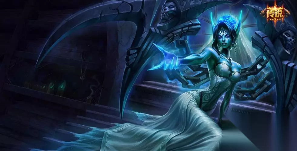 鬼魂新娘——莫甘娜 国服传说级皮肤,售价129RMB,这款皮肤是为了纪念拉丁服开服而制作的一款皮肤,模型细节做的比莫甘娜其他皮肤细心的多,从平A或者从技能的音效就能看出皮肤的制作细心了,蓝色婚纱裙十分的精致; 这款皮肤设计的灵感来源于拉美洲的传说——La Llorona; La Llorona,即哭泣的女人,是一个广泛流传于墨西哥与美国西部的故事。 尽管在南北美不同国家、不同地区流传着数十个版本的传说,但是在La Llorona的故乡墨西哥,流传最广的是一个凄冷哀伤的故事:一个名叫María的土著/混血/土生白人女子爱上了一个西班牙骑士,为他生了三个孩子。但是当她要求一个名份的时候,骑士却再三推诿,最终和一个西班牙贵妇结婚了。María伤心愤怒,先是淹死了三个孩子,然后自己投河自尽。她被天堂拒之门外,除非她能够找回自己杀死的孩子。于是,女人的幽魂便在世间飘荡,一面哭泣着呼喊“我的孩子你们去哪儿了?”,一面不断地拐走别人家的孩子……