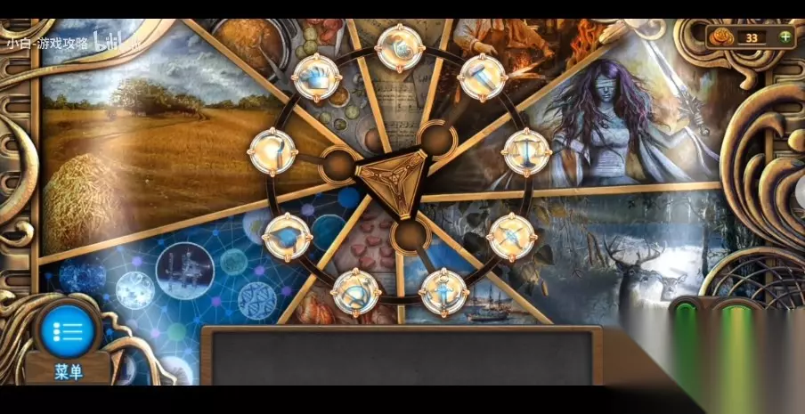 142、查看办公桌上边的录音机,对比海报里的数字和字母,将收音机频道调整至对应的部位,得到【雕刻的点缀2】。 143、回到展厅,将【雕刻的点缀】放到左边的展柜凹槽中完成游戏,将机关里的小人摆在对应的部位,开启展柜得到【油剂】。