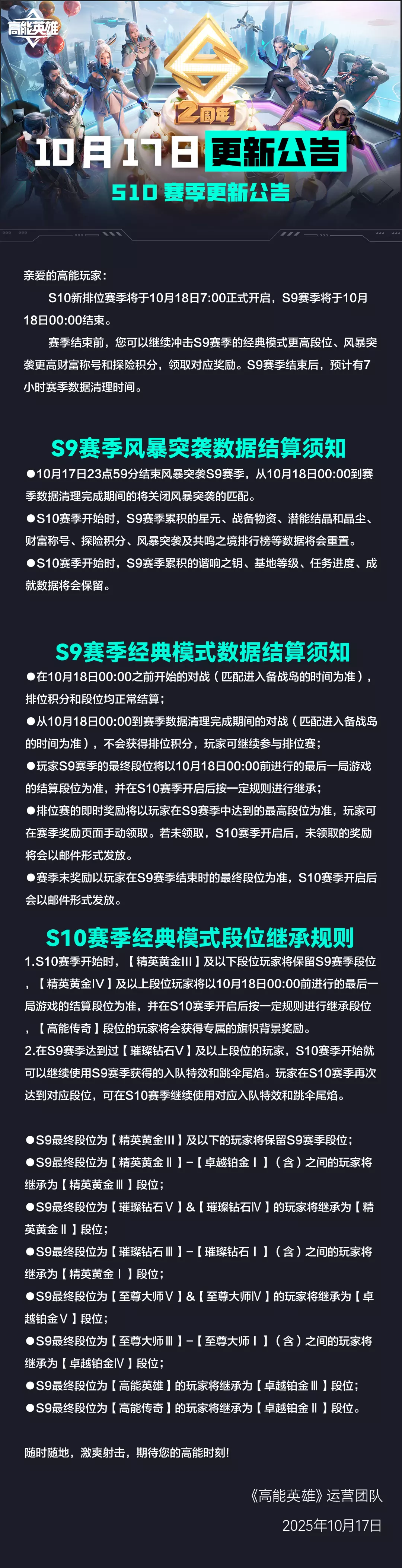 《高能英雄》S10赛季更新公告