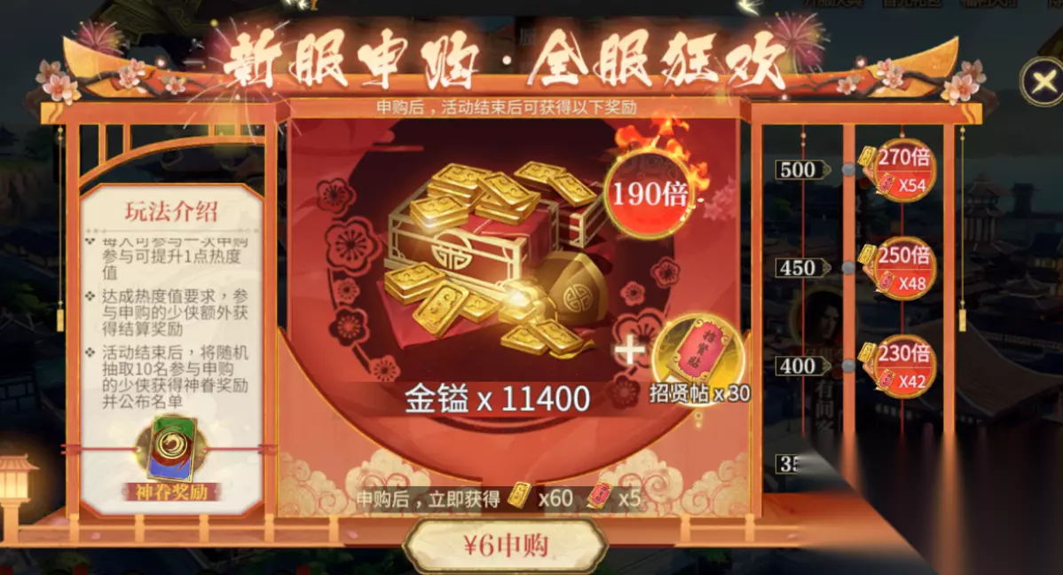 同时还有一个全服玩家共同参加的活动全服申购,可以说是目前性价比最高的活动,能获取大量金镒和抽卡道具,这波能白薅的羊毛千万不能错过。