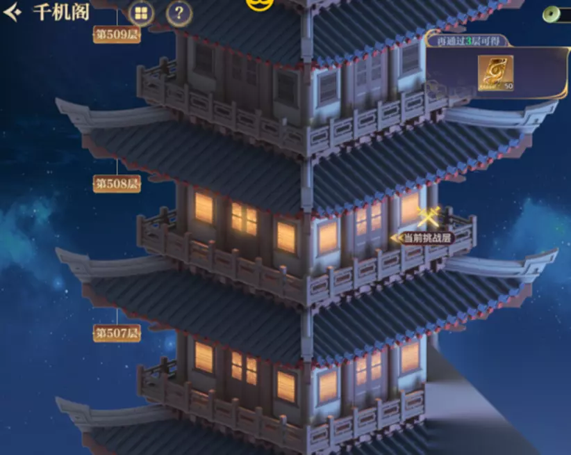 帮派贡献前期建议金镒捐献,能加快帮派升级速度,方便开启更高级的帮派商店 帮派内演武场可以提升技能,加强某一类英雄的属性,建议优先提升自己阵容中核心英雄类别的技能等级。 需要参加的一些活动: 九头勾玉、荧惑争夺、据点争夺,可以获取大量的帮派币在集市帮派商店兑换需要的资源 千机阁 千机阁是游戏内开启最早的玩法,也是衔接主线和副本的内容。除了每层挑战成功给奖励,每十层也会给更大价值的奖励。玩家前期需要的突破丹基本都是从这里获取;当层数达到30层以上,后续可从这里获得英雄装备、金镒、招贤帖、橙卡信物。