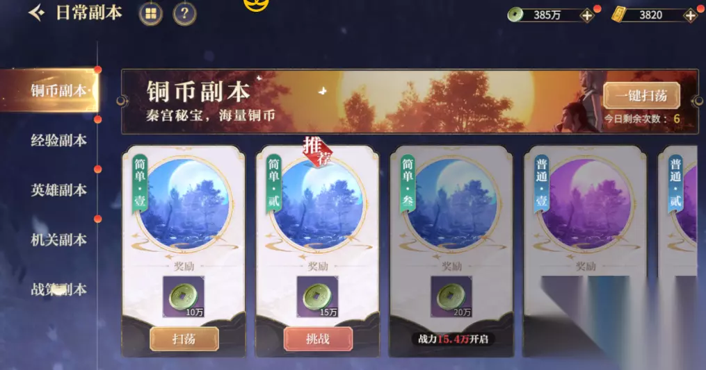 其中特别要注意日常副本是每天都可以做的,一定不要忘去把次数刷完。