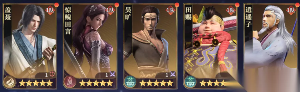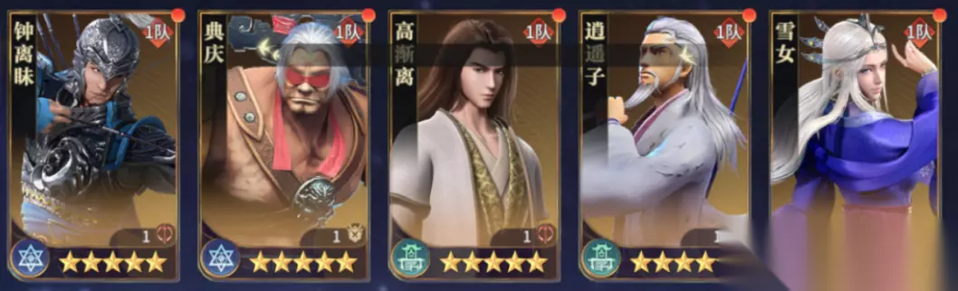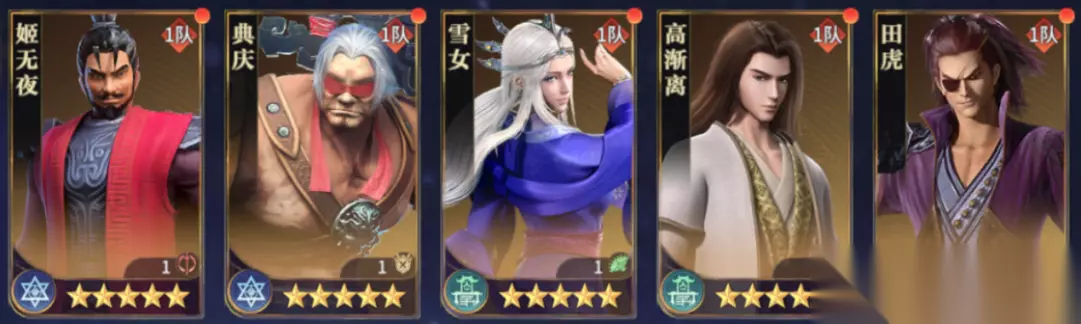 高渐离+雪女+钟离眛+典庆+逍遥子