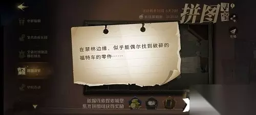 1、拼图信息:在禁林边缘,似乎能偶尔找到破碎的福特车的零件。