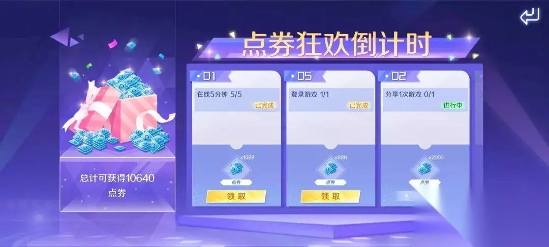 截止至5月22日,参与【点券狂欢倒计时】活动,完成全部任务总计可获得10640点券! 171f47853bda91a6kafy2.png" alt=""/> ▲10640点券 04 520心意钻石礼来袭 甜蜜浪漫的日子怎么能少了钻石礼相伴?!“双倍钻石雨,下!”