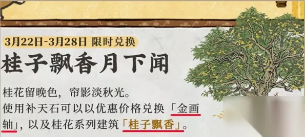 江南百景图桂子飘香怎么获得?桂子飘香是3月25日更新后新增加的一个建筑,和蟾宫月桂造型差不多,对于获取方法与价值许多小伙伴还不了解,小编来为大家介绍下桂子飘香的获取方法与入手价值。 江南百景图桂子飘香怎么获得?