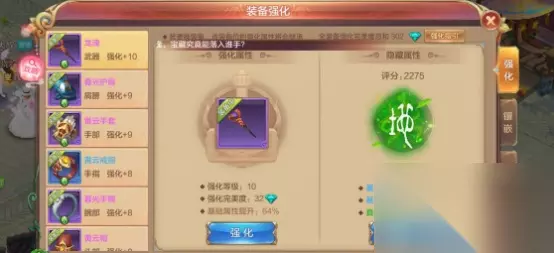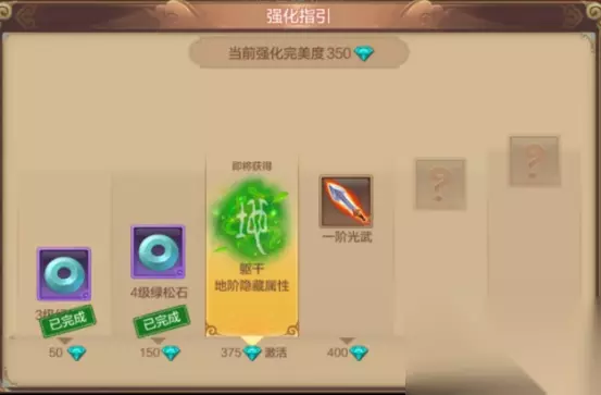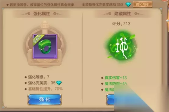 当装备的强化达到装备强化完美度的总和达到200钻时,将会开启隐藏属性。隐藏属性分为:天阶、地阶。而这两个大阶层又各分为10阶,属性逐阶开启,开启后就永远不会消失。