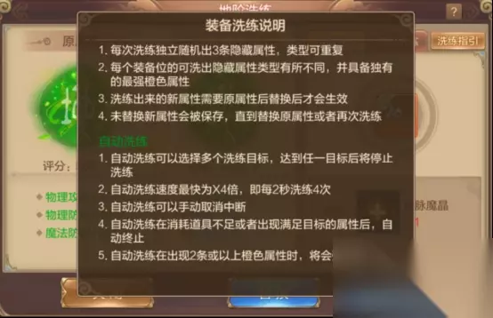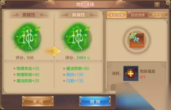 升级阶层时,每一阶隐藏属性都含有三条随机属性,可以使用地脉魔晶来洗练地阶属性/天象魔晶来洗练天阶属性,运气好的时候或许能获得更强的随机属性。升级阶层获得的隐藏属性是强化在装备位上的,而并非强化在装备上,所以即使更换装备也无需担心。